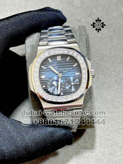 Patek Philippe Nautilus 5712/1R-001? Moon,Blue? Dial and Stonned Bezel With Steel? Bracelet Copy