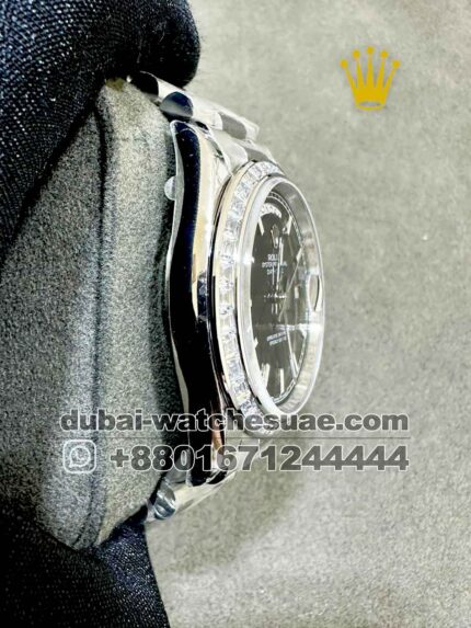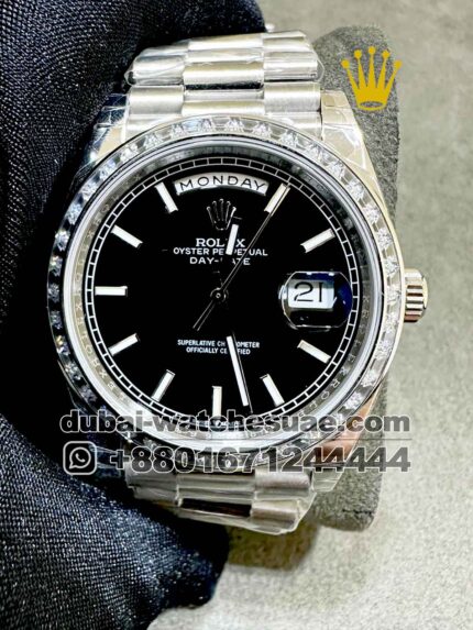 Rolex Day-Date 40mm Black Dial With Stoned Bezel Copy