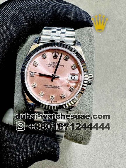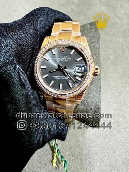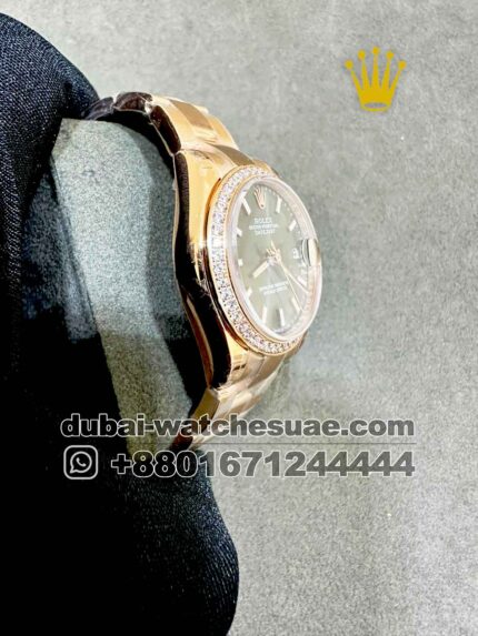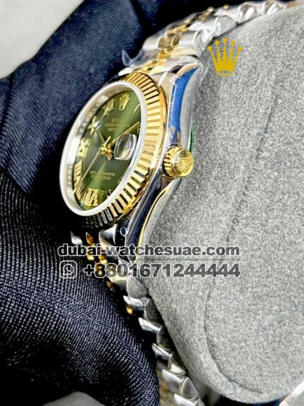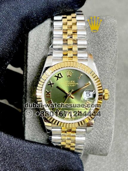 Rolex 31 mm Date Just ,Green color ,Stoned Bezel and Roman Numerals