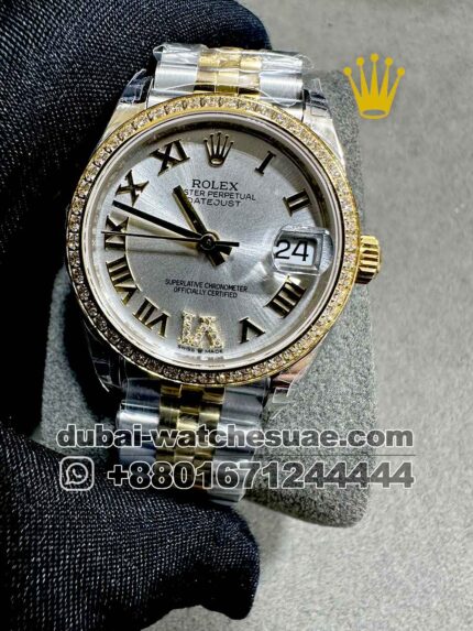 Rolex 31 mm date just two tone Rose gold ,Stonework, Roman Number