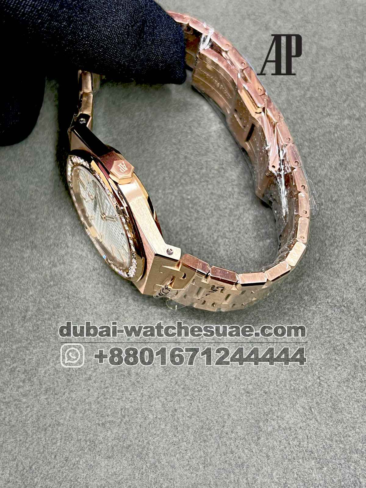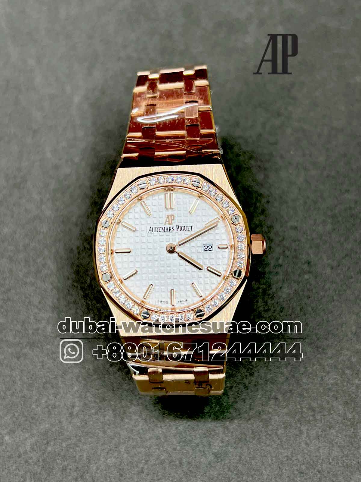 Model : Audemars Piguet Royal Oak 33 mm White dial With Stoned Bezel Rose Gold Bracelet
