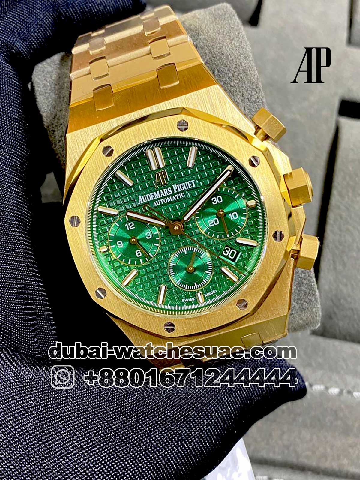 Audemars Piguet Royal Oak Chronograph Automatic Men’s Watch 41mm Green Dial And Sub Dial Yellow Gold Bezel and Bracelet