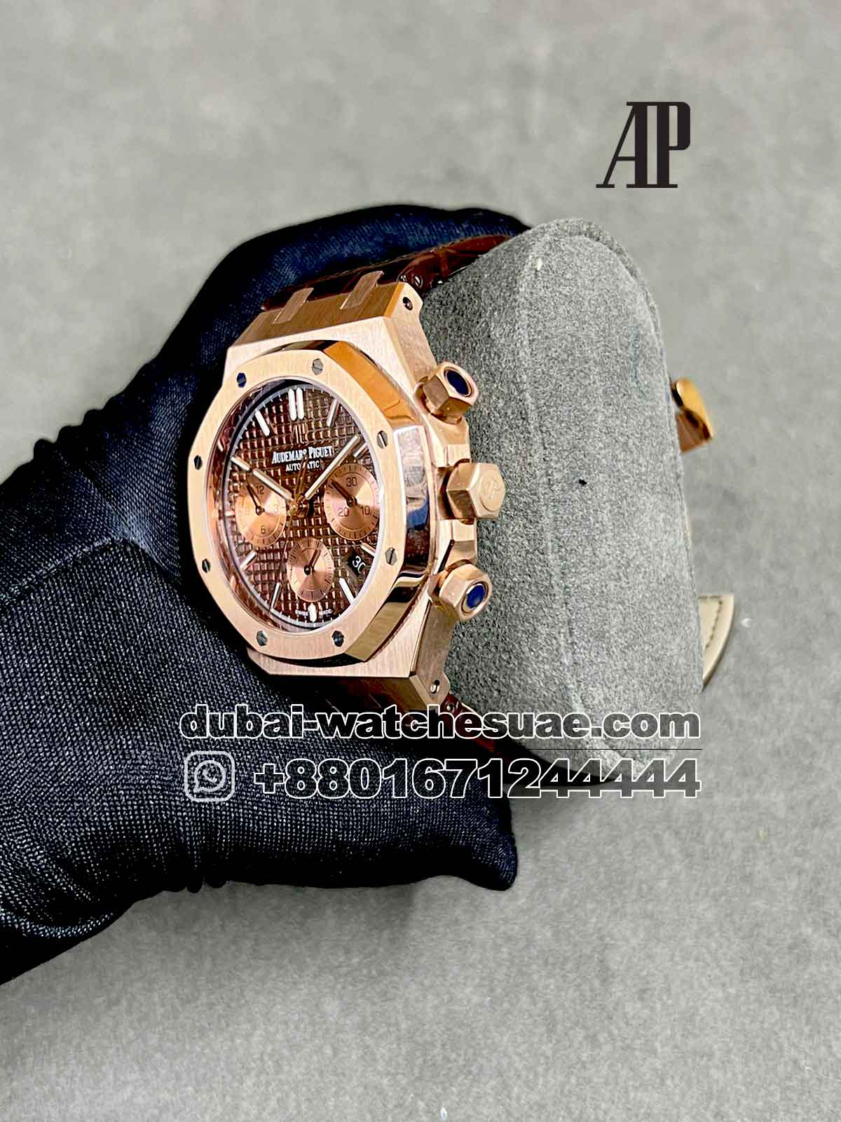 Audemars Piguet Royal Oak Chronograph Rose Gold Dial With Brown Leather Strap