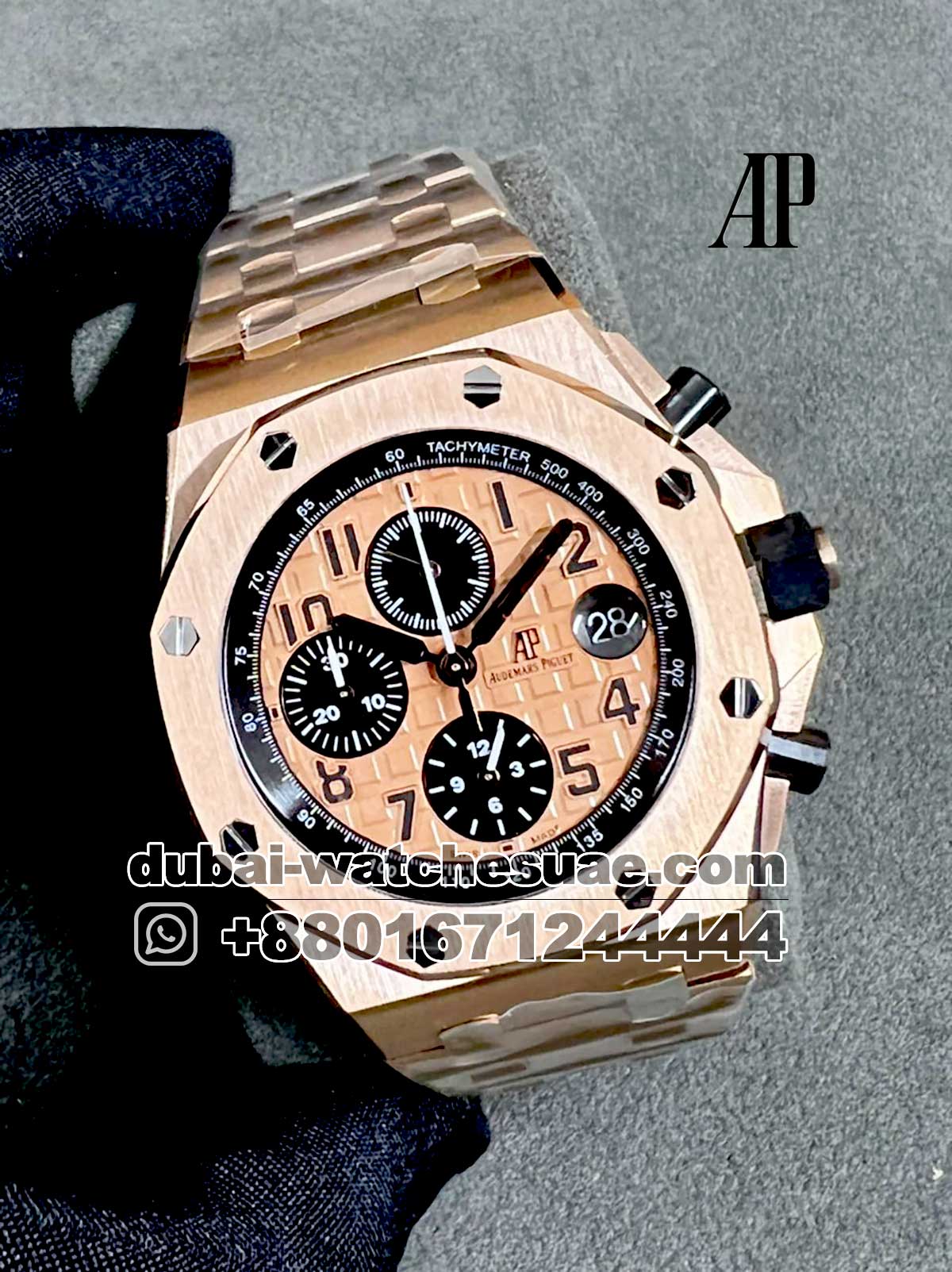 Audemars Piguet Royal Oak Offshore Brick Champagne 42mm Pink Gold Dial With Black Sub dial Rose Gold Bracelet