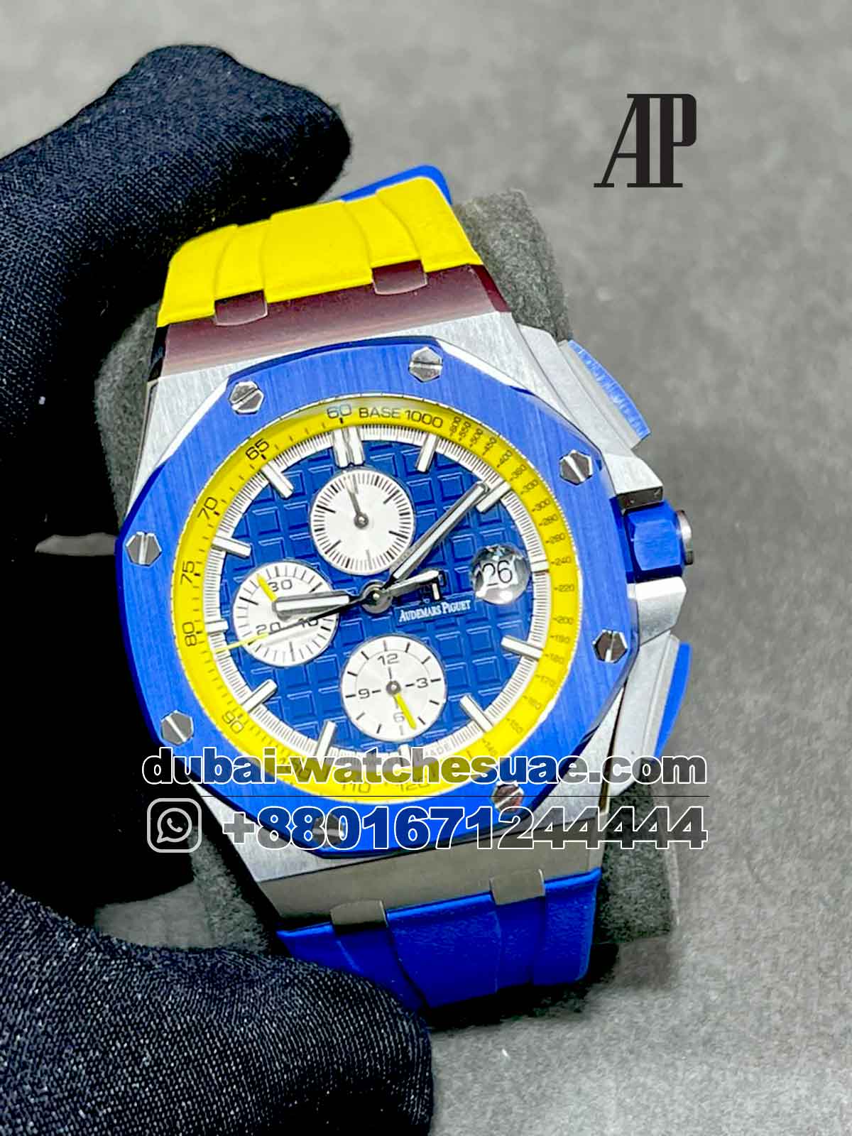 Model: Audemars Piguet Royal Oak Offshore Chronograph 42mm Blue?Dial White Sub Dial Blue Bezel with Two Tone Straps