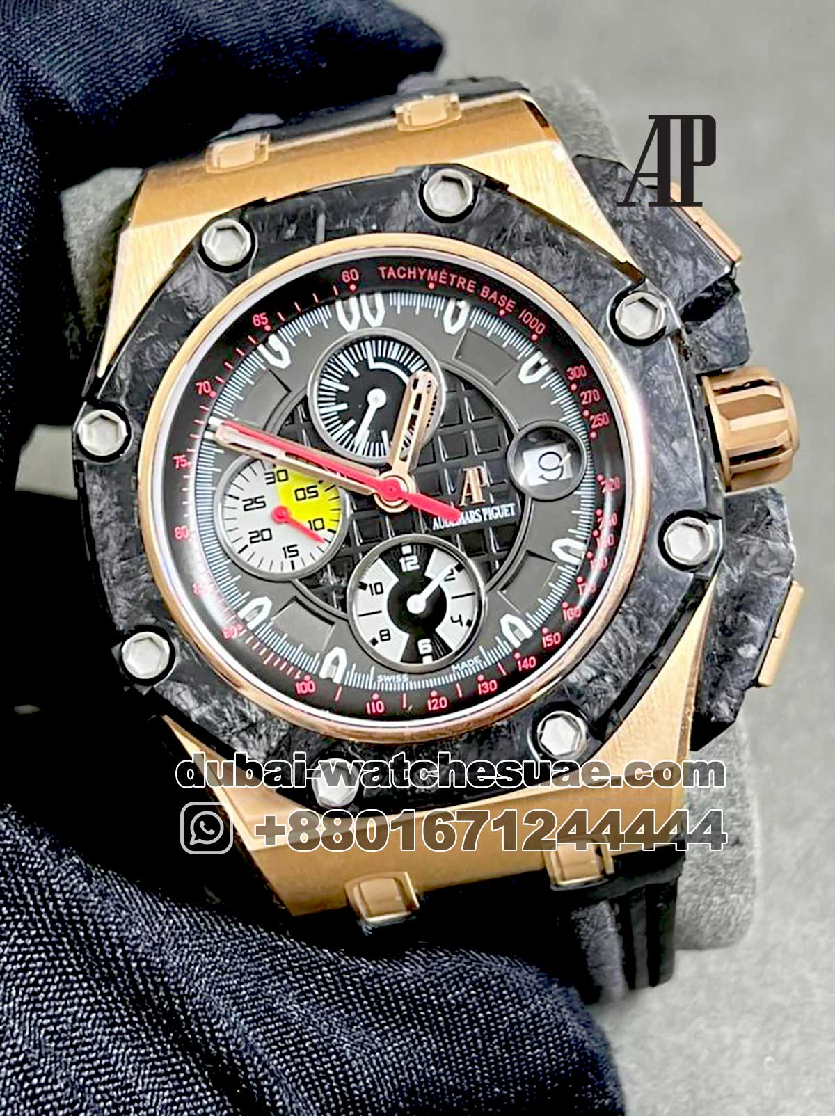 AUDEMARS PIGUET ROYAL OAK OFFSHORE CHRONOGRAPH GRAND PRIX ? Black Bezel ROSE GOLD Case Black Rubber Strap