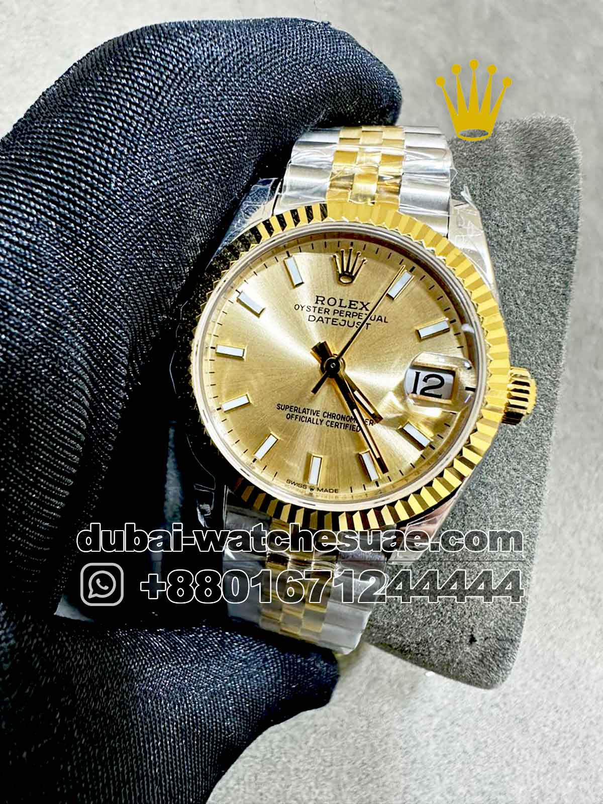 This exceptional Ladies Rolex 31MM Datejust Gold Dial replica is available for just $1,161.00. This master copy gives outstanding value for people who seek high design and reliable performance without spending a lot. It’s the perfect blend of affordability and luxury craftsmanship. For just a fraction of the cost, you can take advantage of the prestige of a high-end watch, the dependability of strong construction, and the assurance of a two-year service warranty.