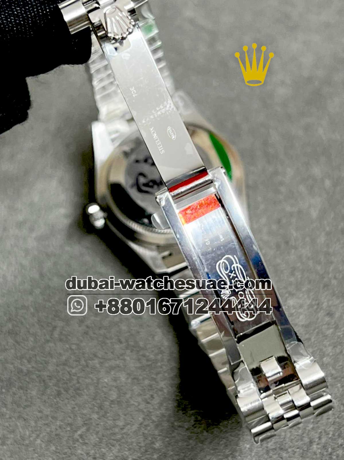 The bezel and bracelet of this copy watch are both made of 904L stainless steel. 904L stainless steel is known for its outstanding corrosion resistance and excellent polish retention, resulting in a long-lasting finish and stability. The fluted bezel design highlights the Datejust’s traditional look. Its beautifully crafted edges reflect light with elegance, adding depth and delicacy to the entire design. The bracelet is made of many small chains and wraps gently around the wrist, creating a secure and comfortable fit. Its polished and cleared finishes produce a rich, textured appearance that matches the dial nicely.