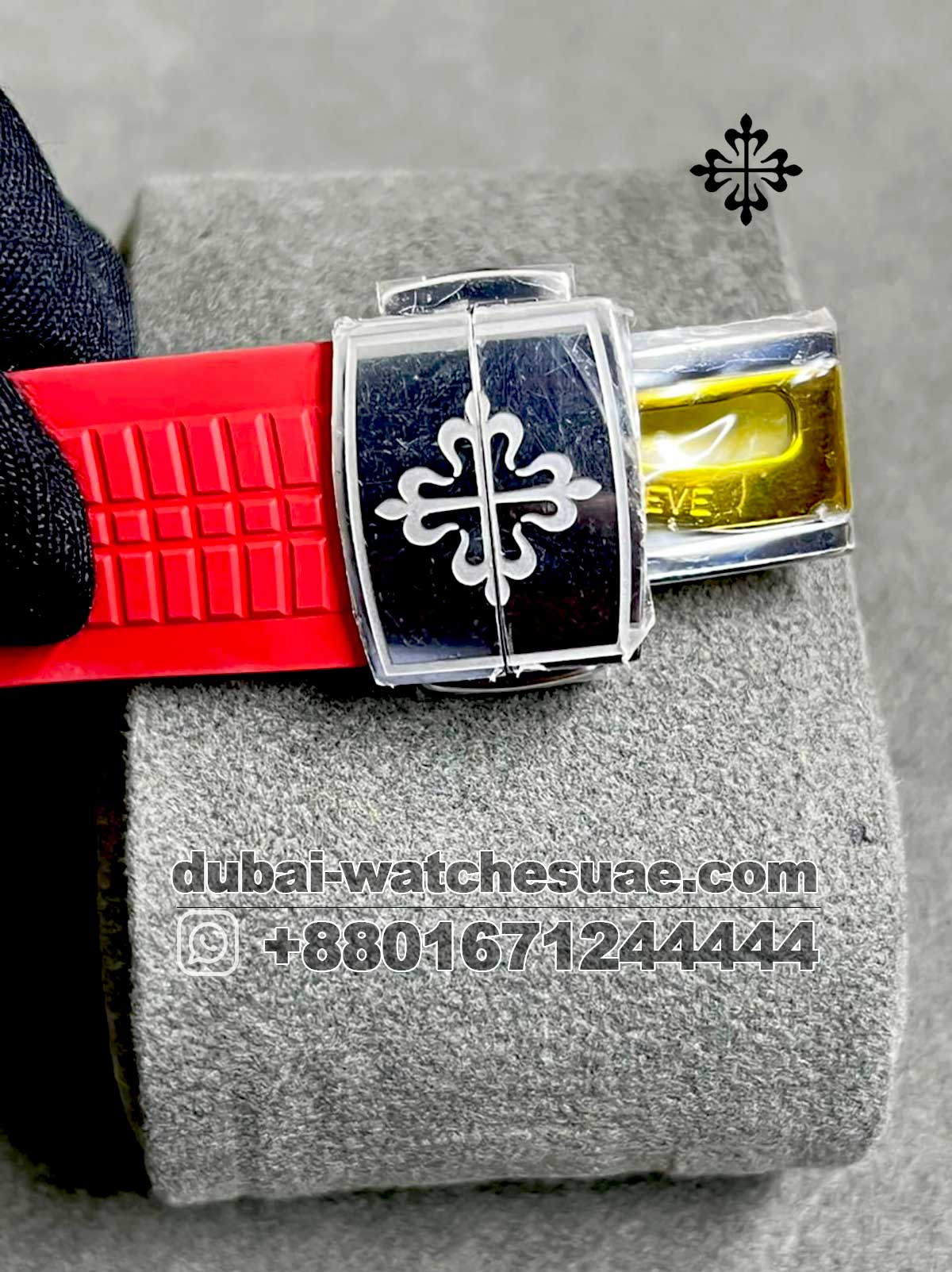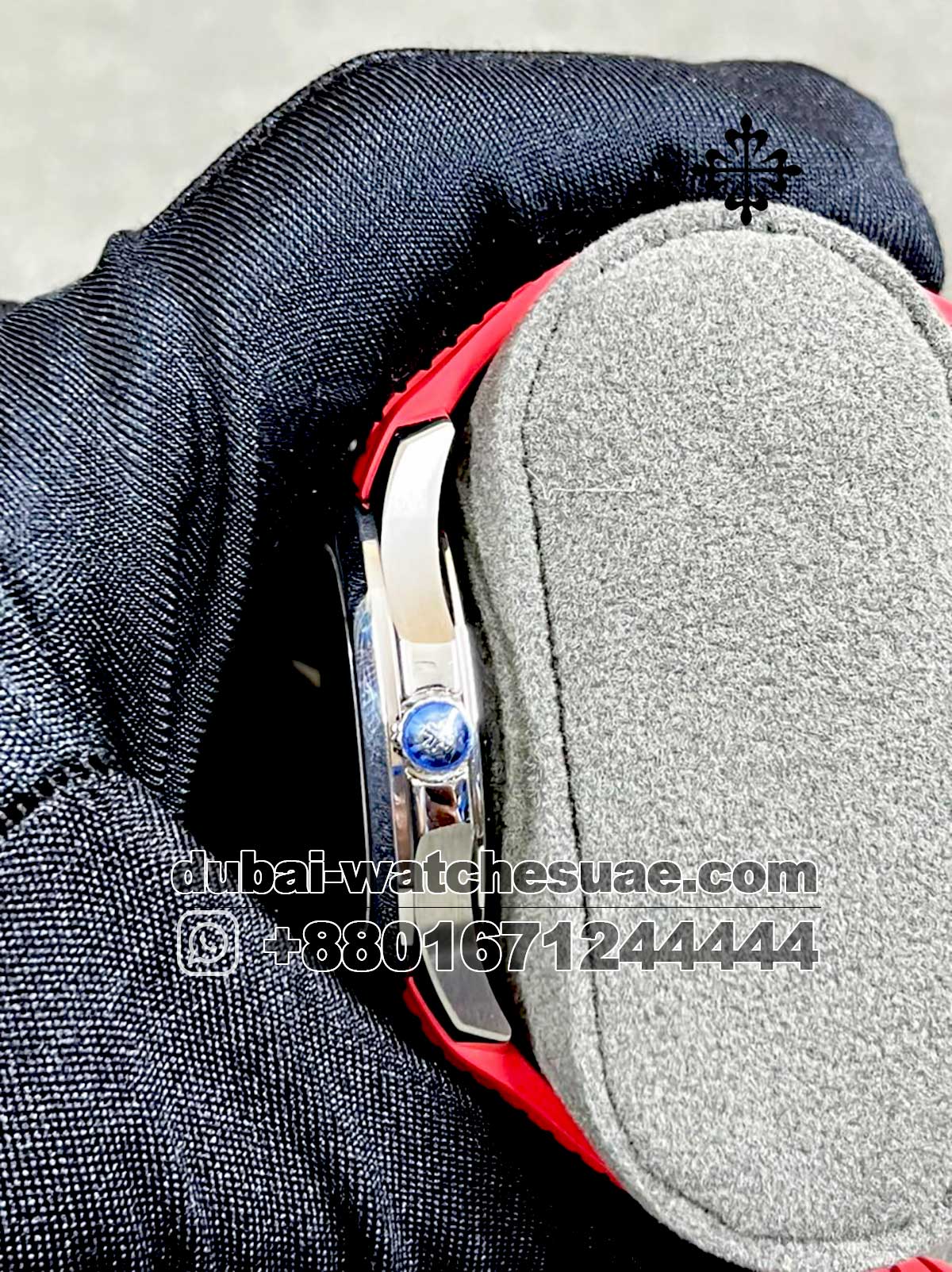 This special version’s red tropical rubber strap, which is made of premium composite material, is one of its most noticeable features. It offers outstanding wrist comfort in addition to being waterproof, resistant to sunlight, and made for daily use. The strap completes the unique look of this master copy and adds to its sporty appearance when paired with a stainless-steel folding clasp.