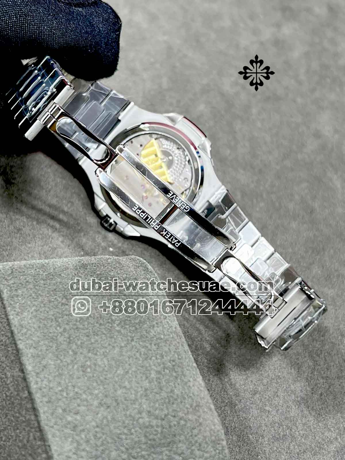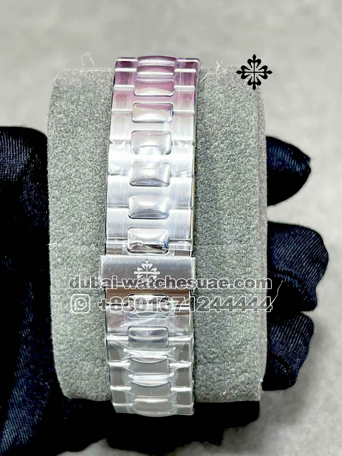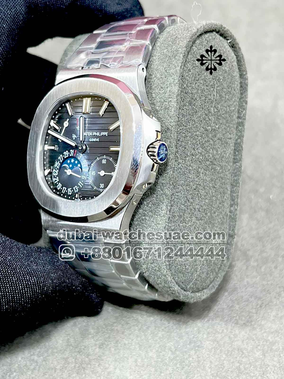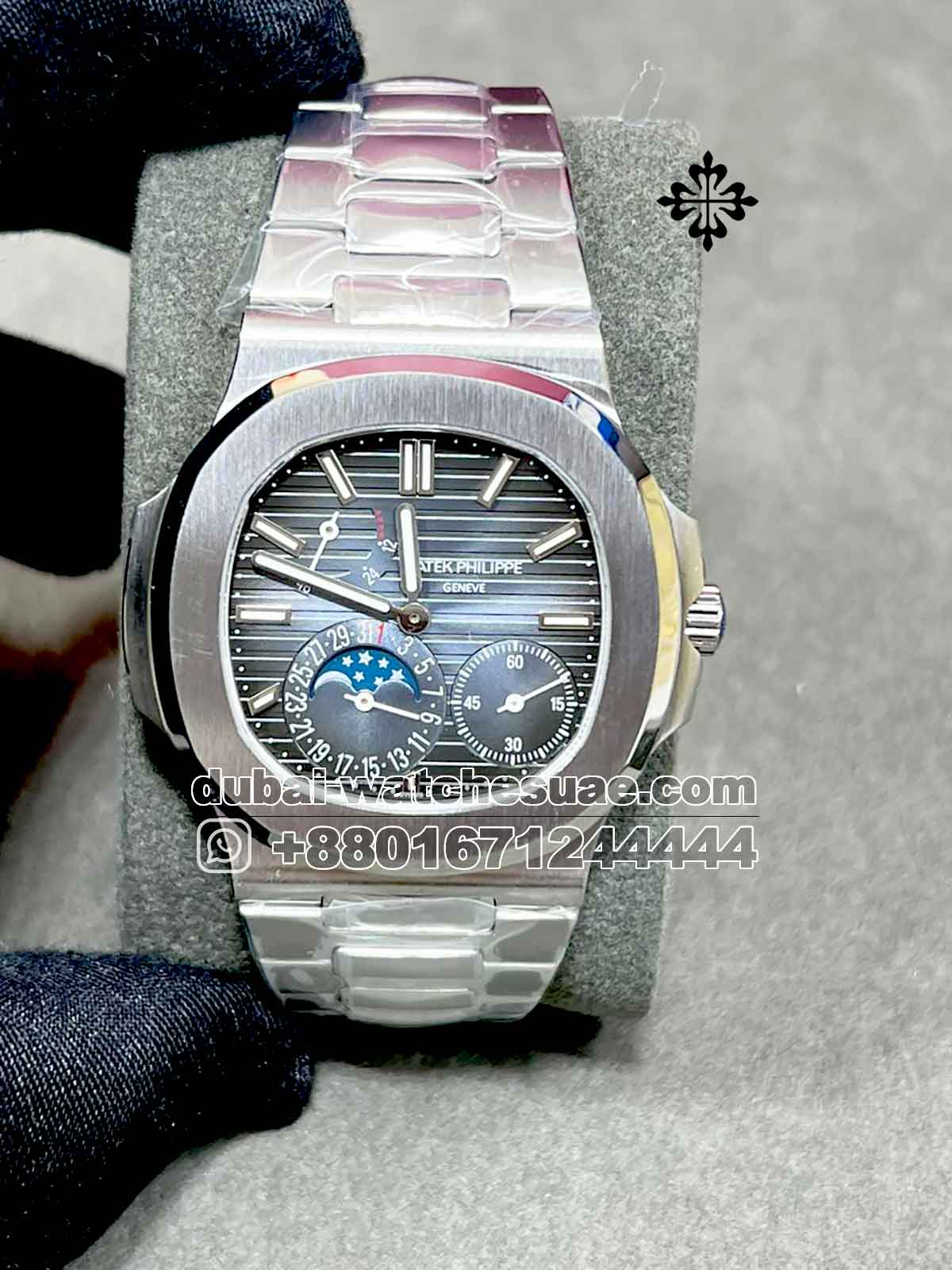Patek Philippe Nautilus? is known for it?s elegant appearance with its rounded smooth octagonal shaped? bezel and blue dial . The steel bracelet can hold the grace on your wrist .