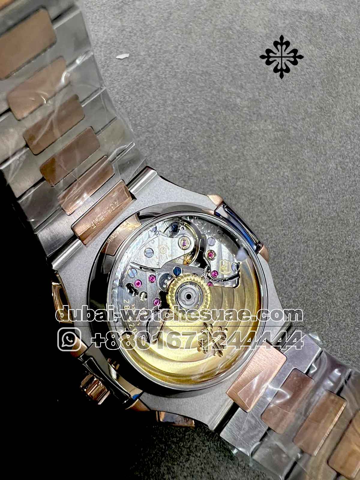 Patek Philippe Nautilus 5980 AR Automatic is known for it?s elegant appearance with its rounded smooth gold plated octagonal shaped bezel and blue dial . The steel and gold plated? bracelet can hold the grace on your wrist .
