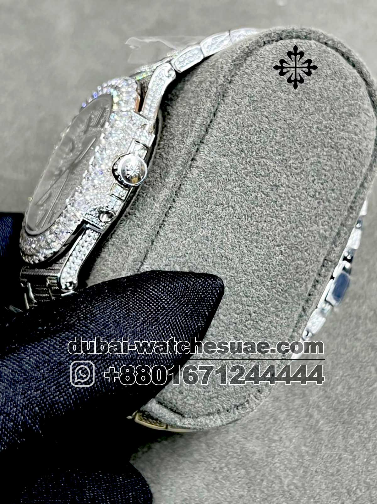 Model : Patek Philippe Nautilus Fully Iced Date Watch For Men 40mm 31.5ct