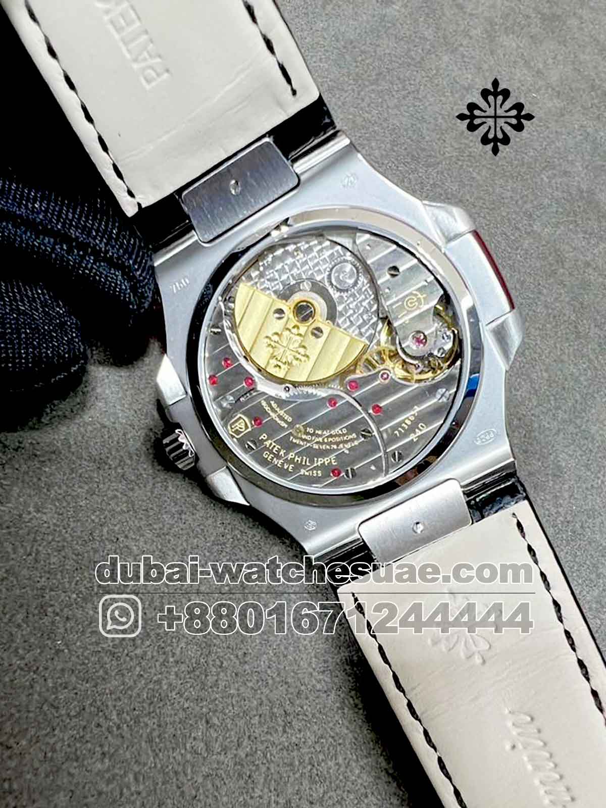 Model: Patek Philippe Nautilus Moon Gray Dial With Black Leather Strap