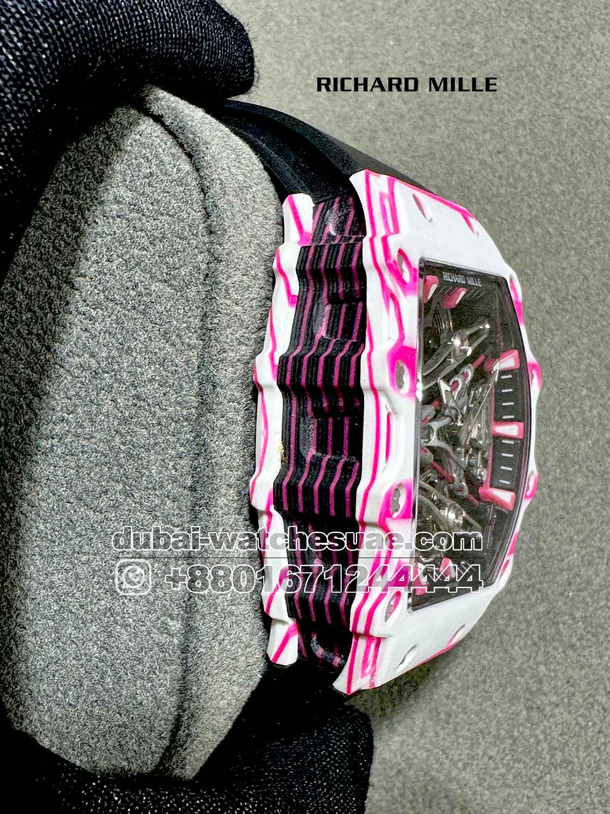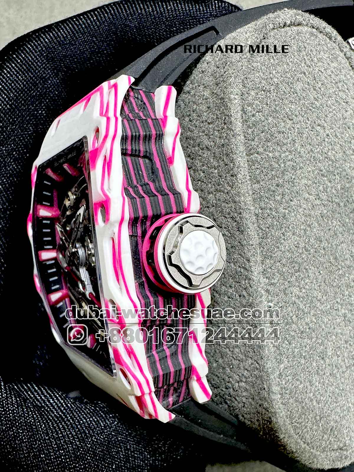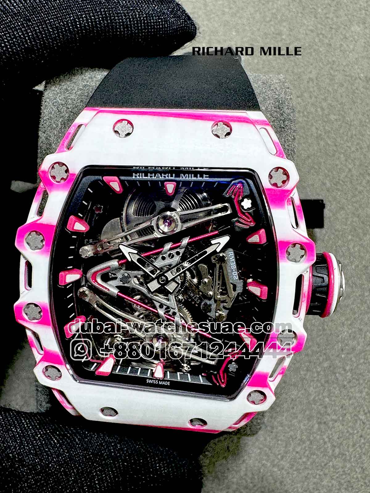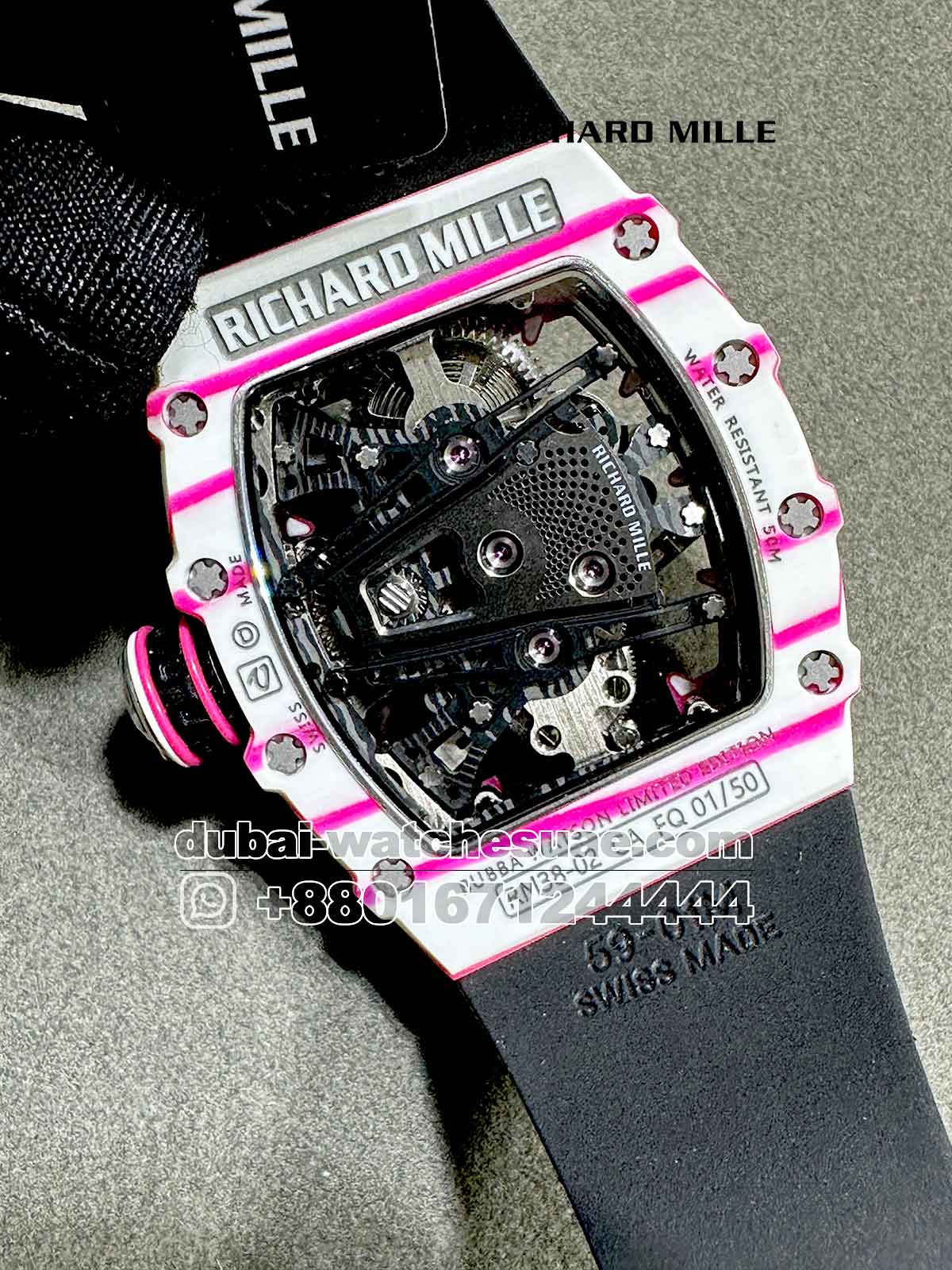Product Name: Richard Mille RM 38-02 Tourbillon Super Slim White and Pink With Black Rubber Strap
