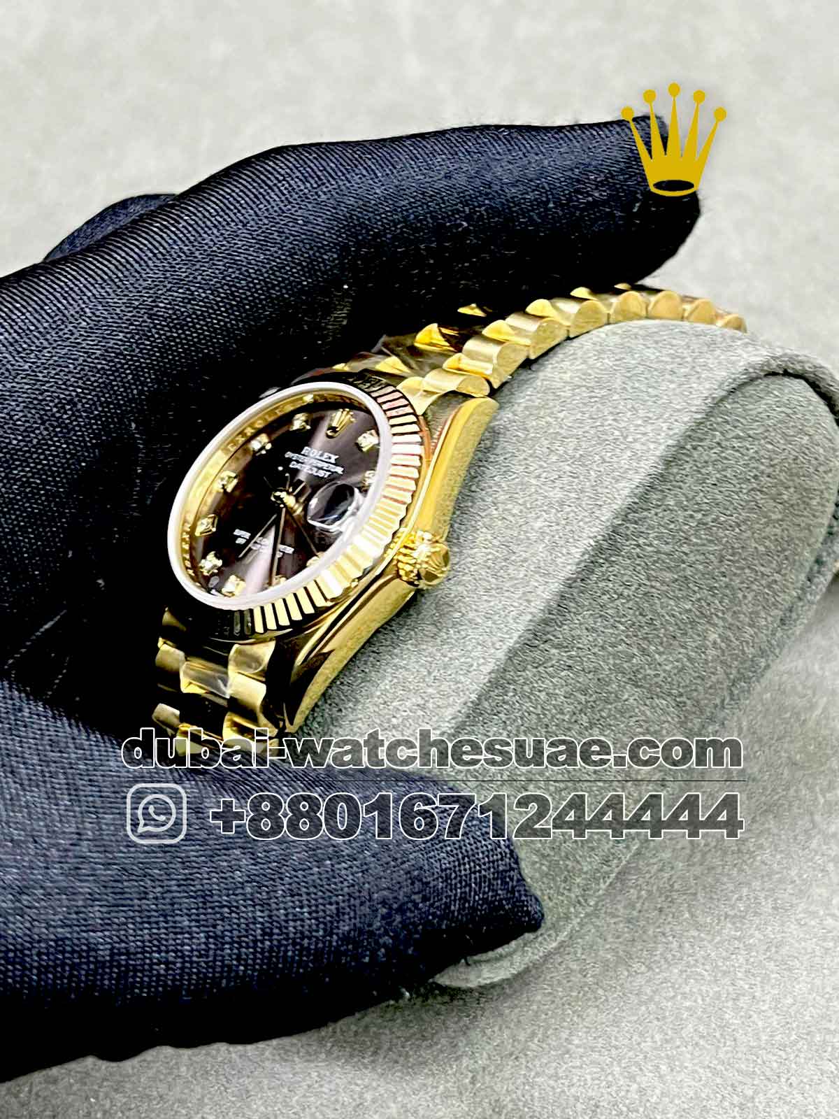 Model: Rolex 31 mm Date ,gold color , light gray
