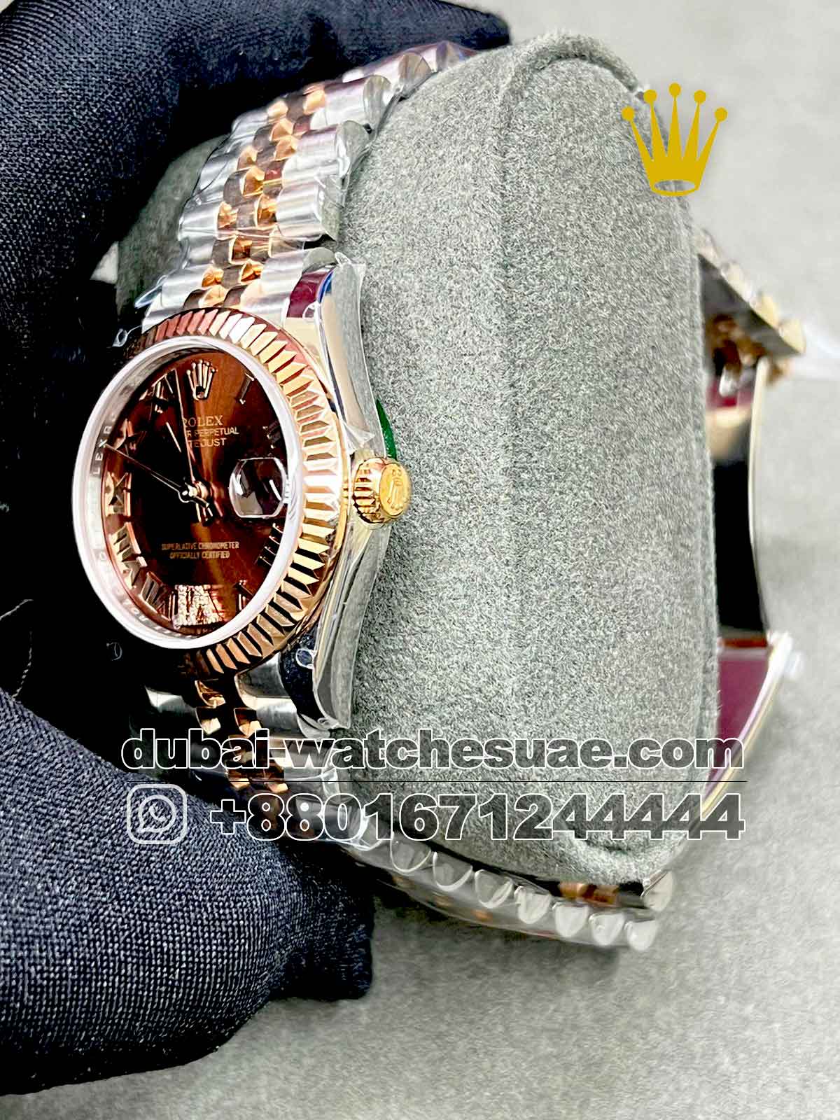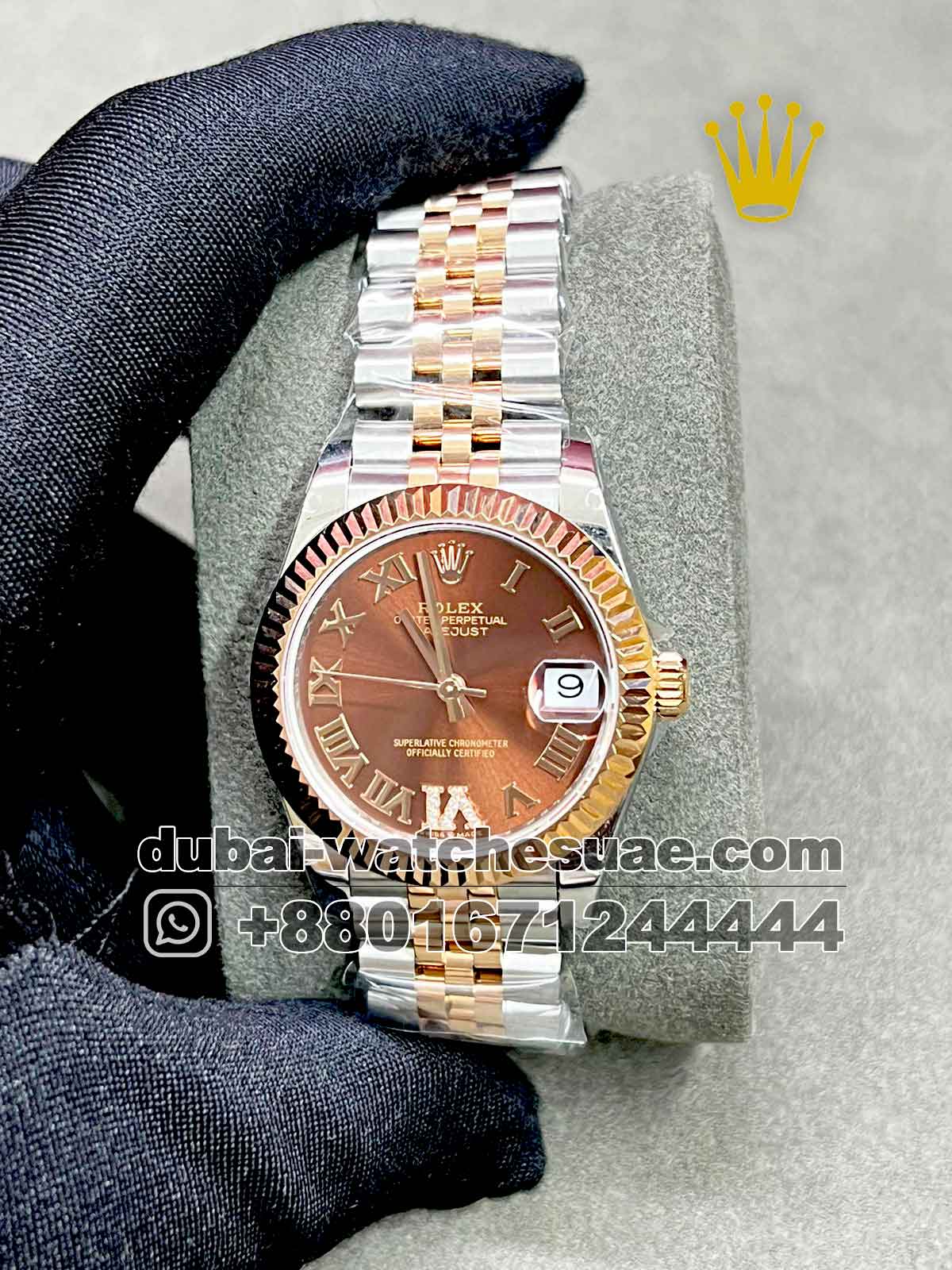 Model: Rolex 31 mm Date Just two tone ,Rosegold color , Roman Number