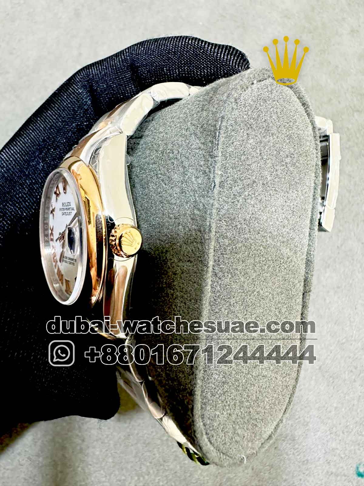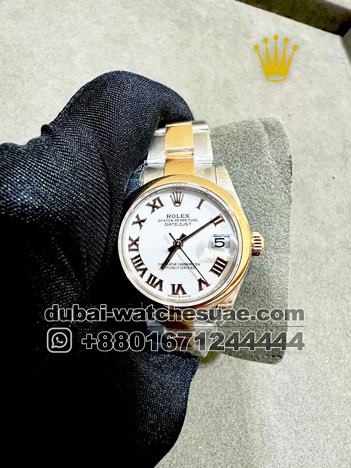Rolex 31 mm Date White? Dial? With Roman Numeric Plain rose Gold? ? Bezel? Two Tone Oyster Bracelet Copy