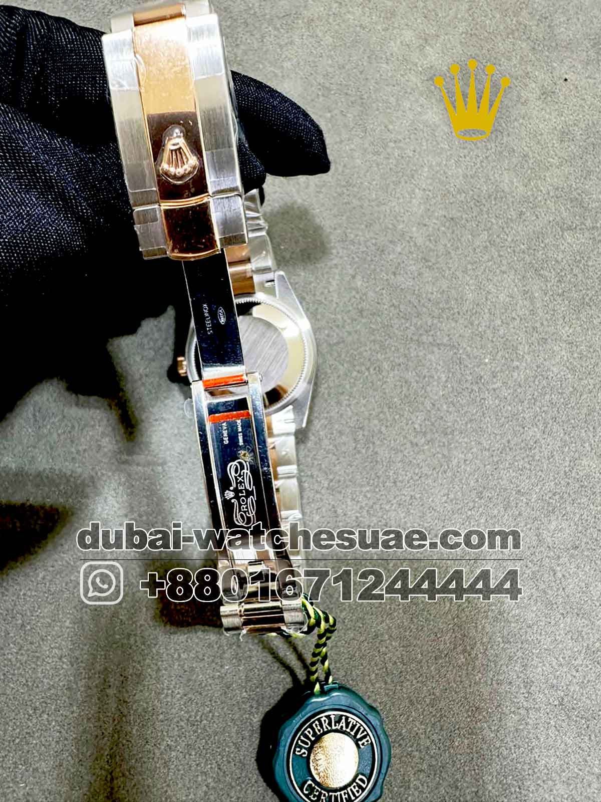 Model: Rolex 31 mm Date White? Dial? With Roman Numeric Plain rose Gold? ? Bezel? Two Tone Oyster Bracelet