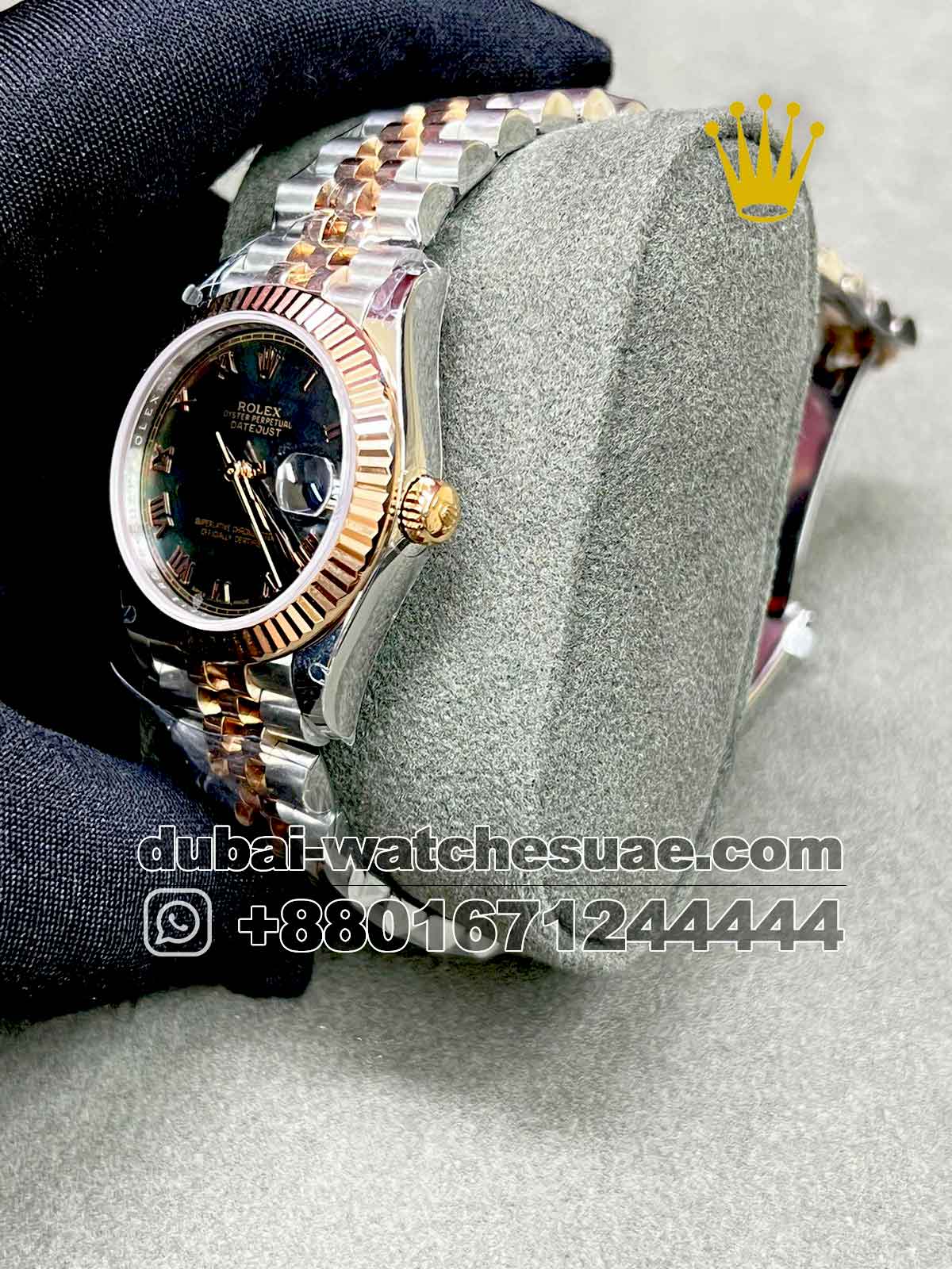 Rolex 31 mm Gray Roman number Two Tone with rose gold bezel