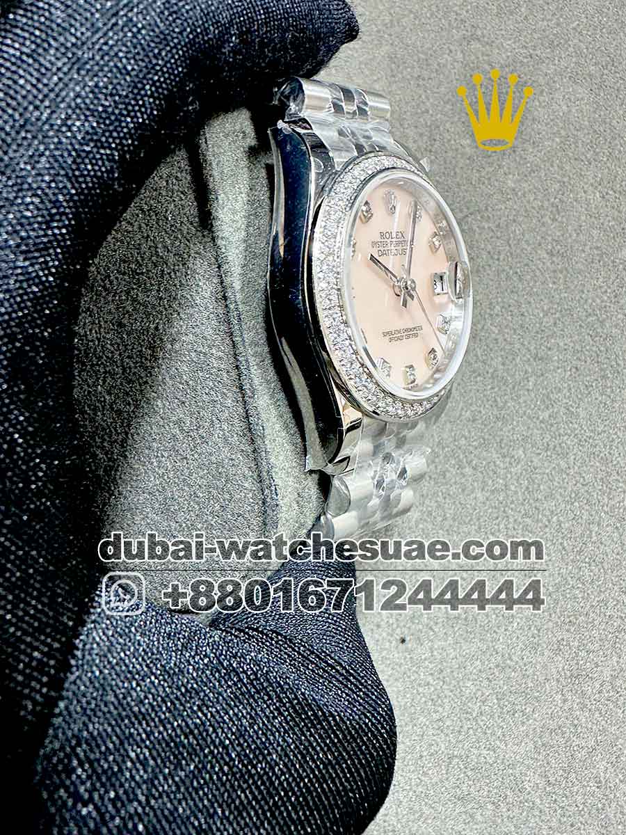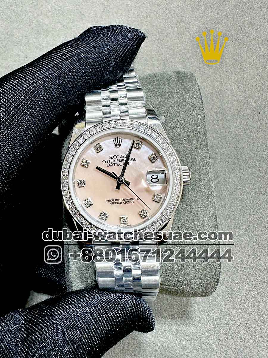 Rolex 31 mm White Mother Of Pearl? With Zircon Stoned Bezel Jubilee Bracelet Copy