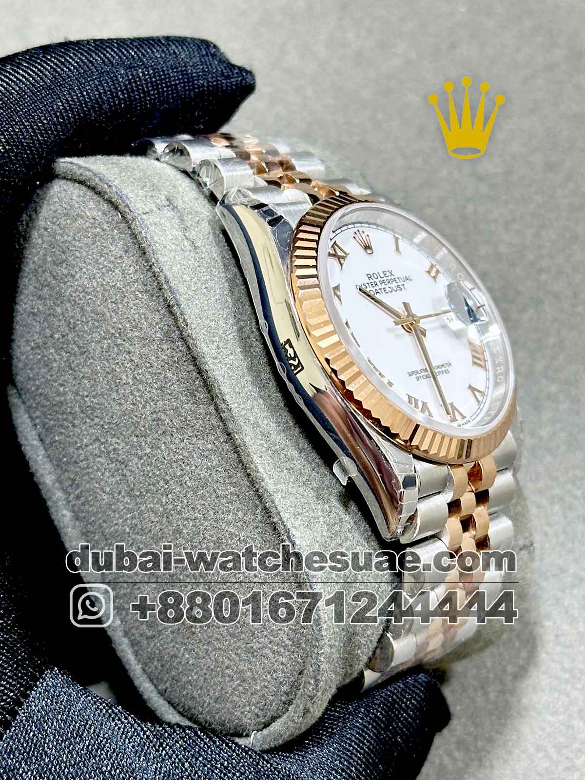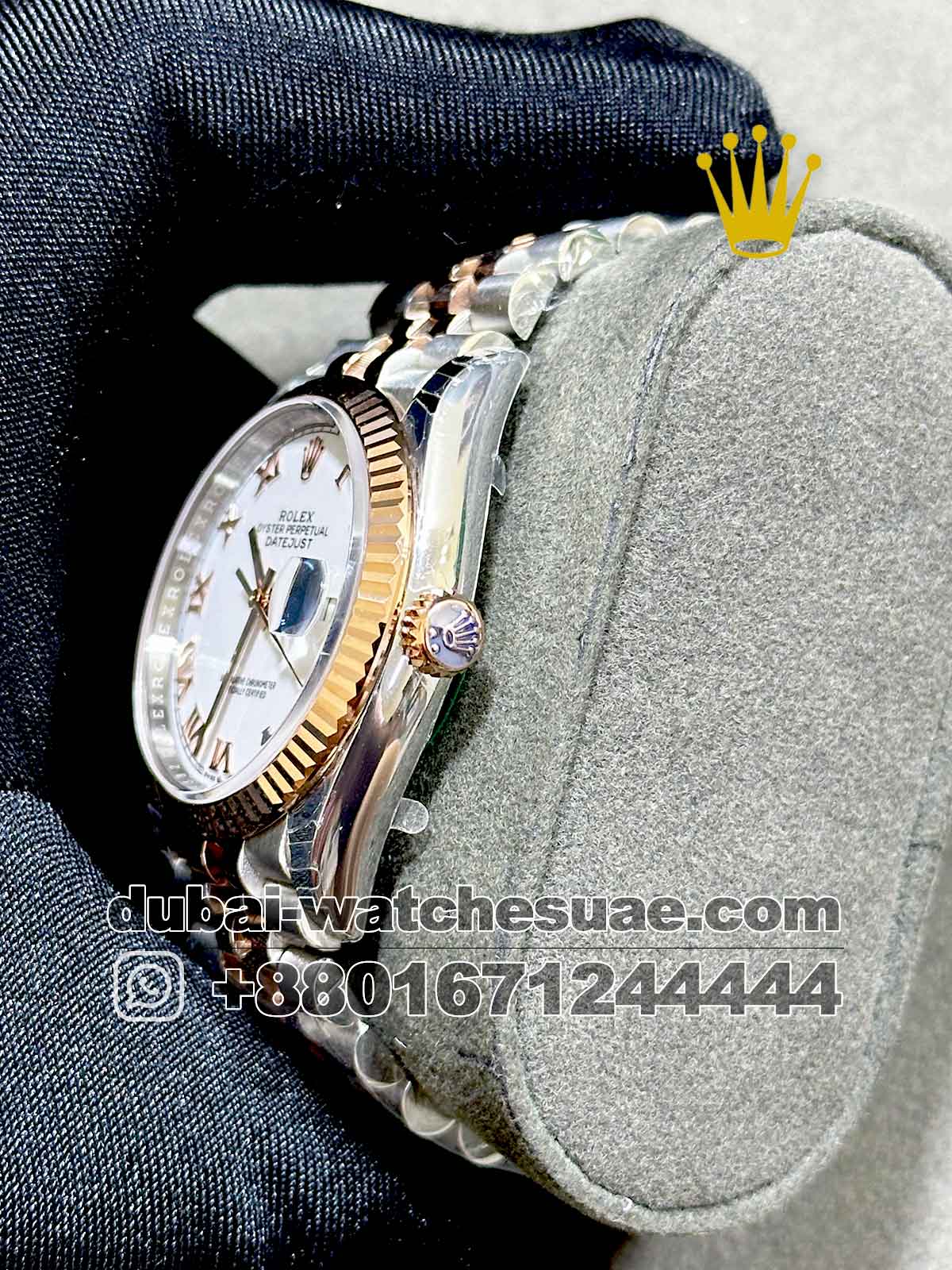 Rolex 36 mm Date Just White Dial and? Roman Numeric With Rose Gold Two Tone Jubilee Bracelet Copy