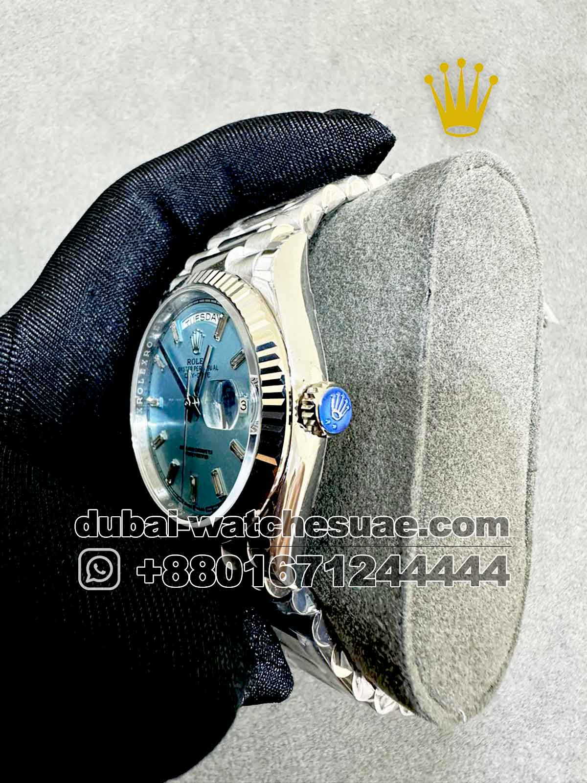 Rolex 36 mm Day date Ice Blue? Dial? Stoned? Numeric With? Flutted Bezel Copy