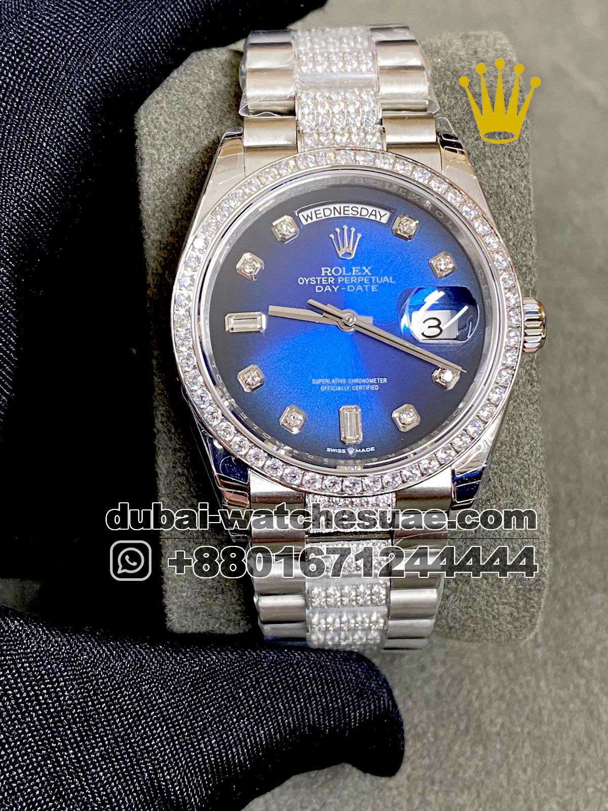 Rolex 36 mm Day Date Ice out Blue face, Stonework Copy – A Brilliant Statement of Luxury and Power