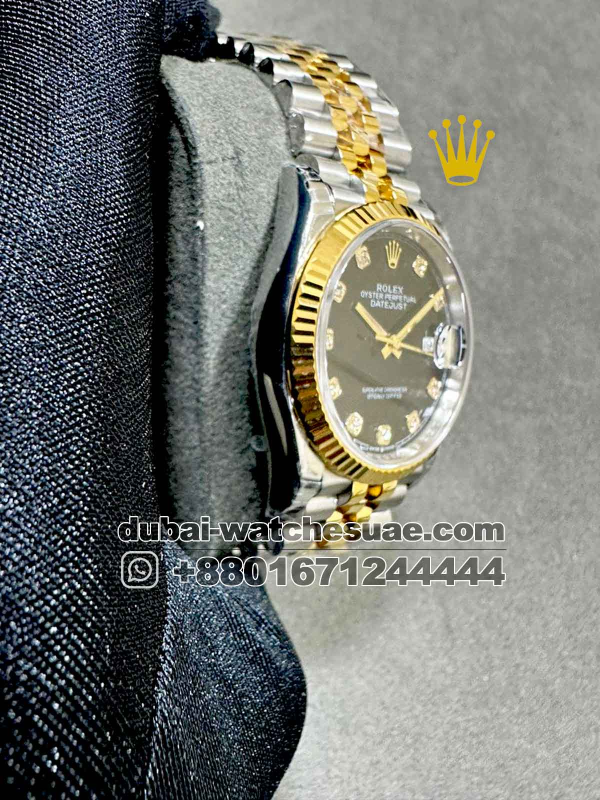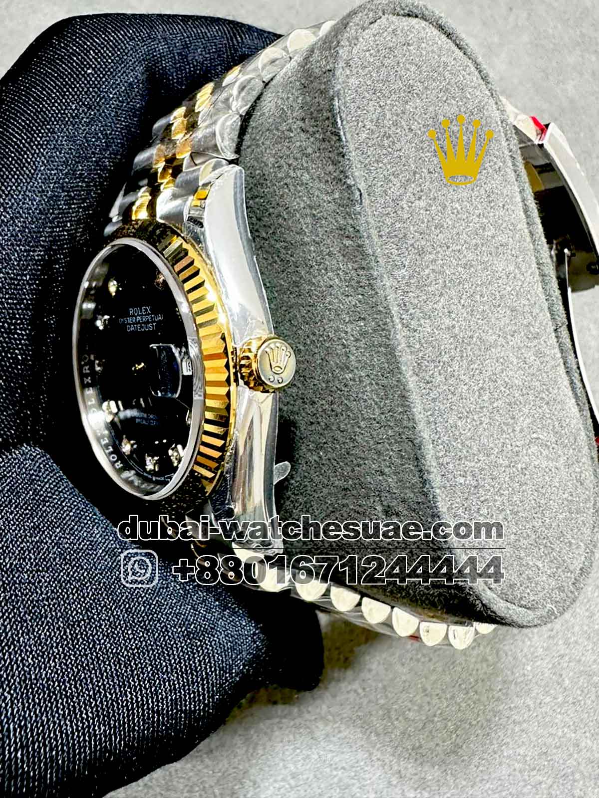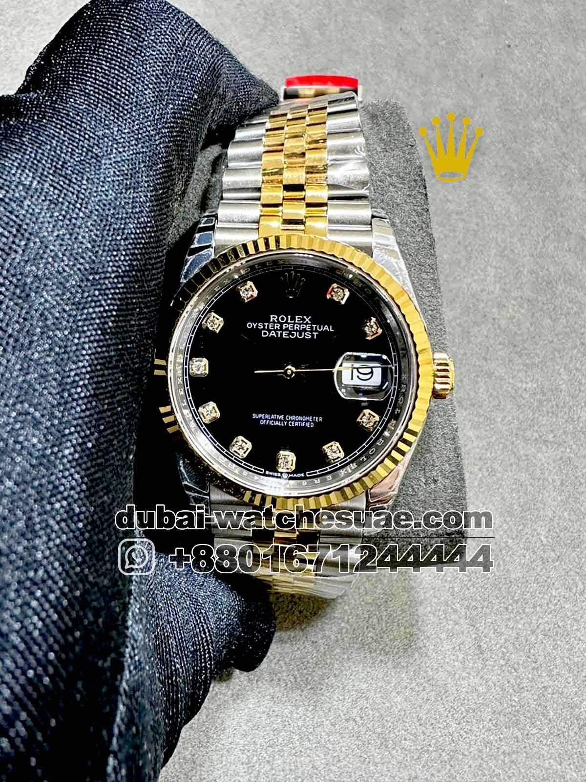 Rolex 36 mm Gold? Date Just? Black Dial With Stone Numeric? Two Tone Jubilee Bracelet Copy
