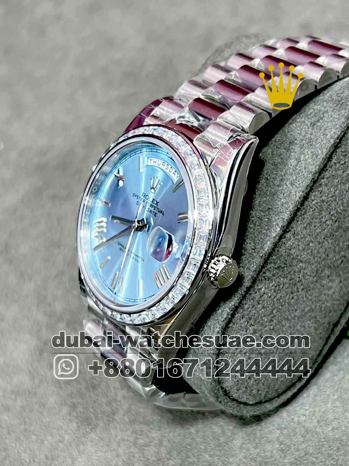 Rolex 40 mm Day date , Blue Face?,Stoned Bezel ,President Bracelet