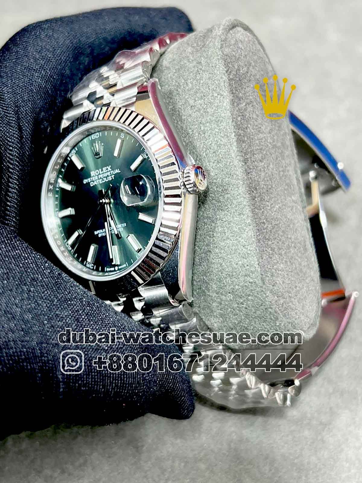 Model: Rolex 41 mm Date Just , Olive Green face, Jubilee