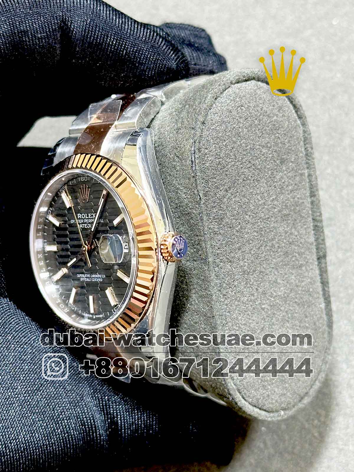 Rolex 41? mm Date Just? Rose Gold Gray Dial and? Flutted Bezel With? Two Tone Oyster Bracelet Copy