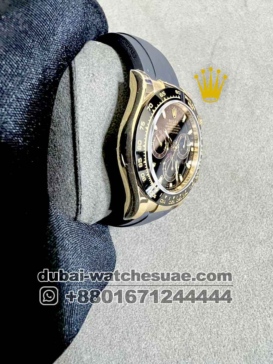 Rolex Cosmograph Daytona 40 mm Gold Black Dial With Black Chrono Black Bezel With Black Rubber Strap Copy