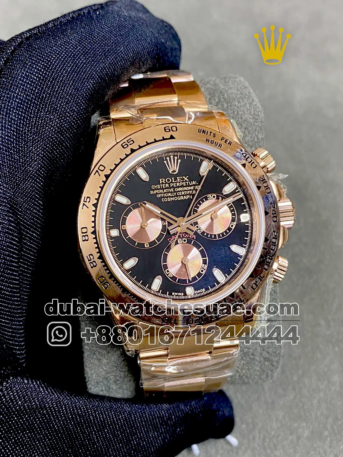 Rolex? Cosmograph Daytona Black Dial Rose Gold Sub Dial With Gold Plated Oyster Bracelet