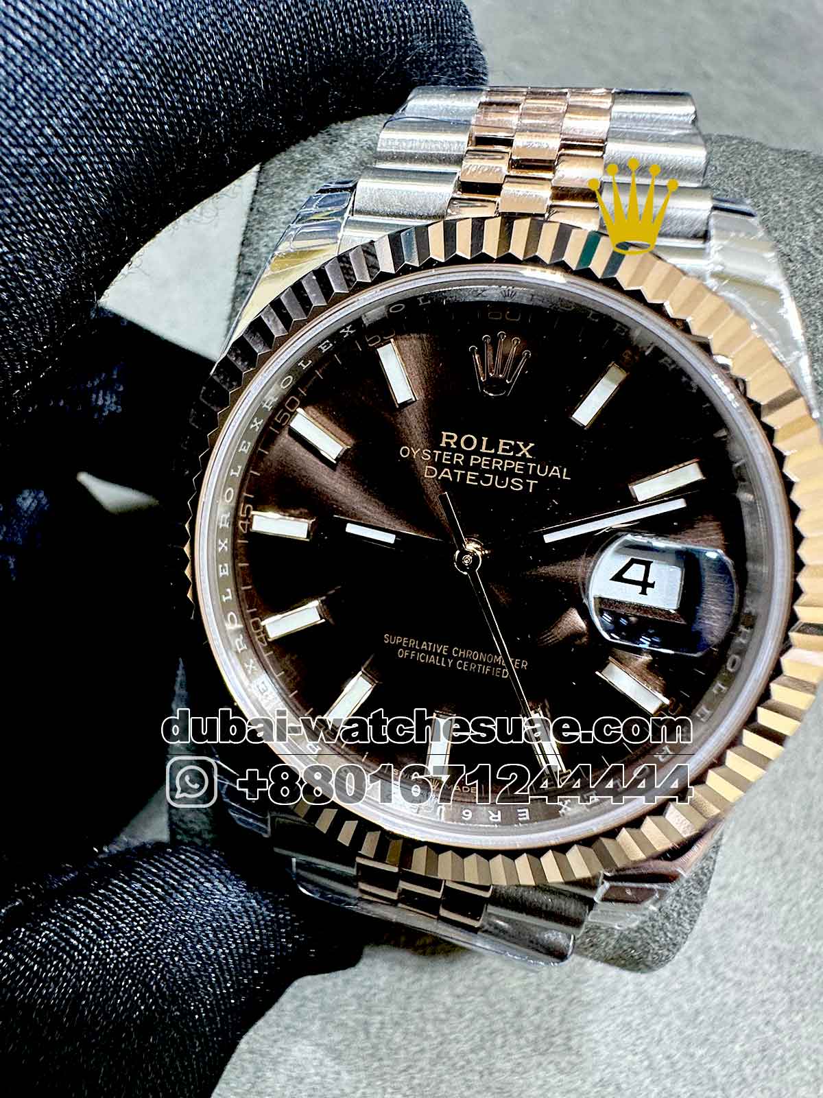 Rolex Date Just 41mm? Chocolate? Dial Flutted Bezel With Two Tone? Jubilee Bracelet Copy