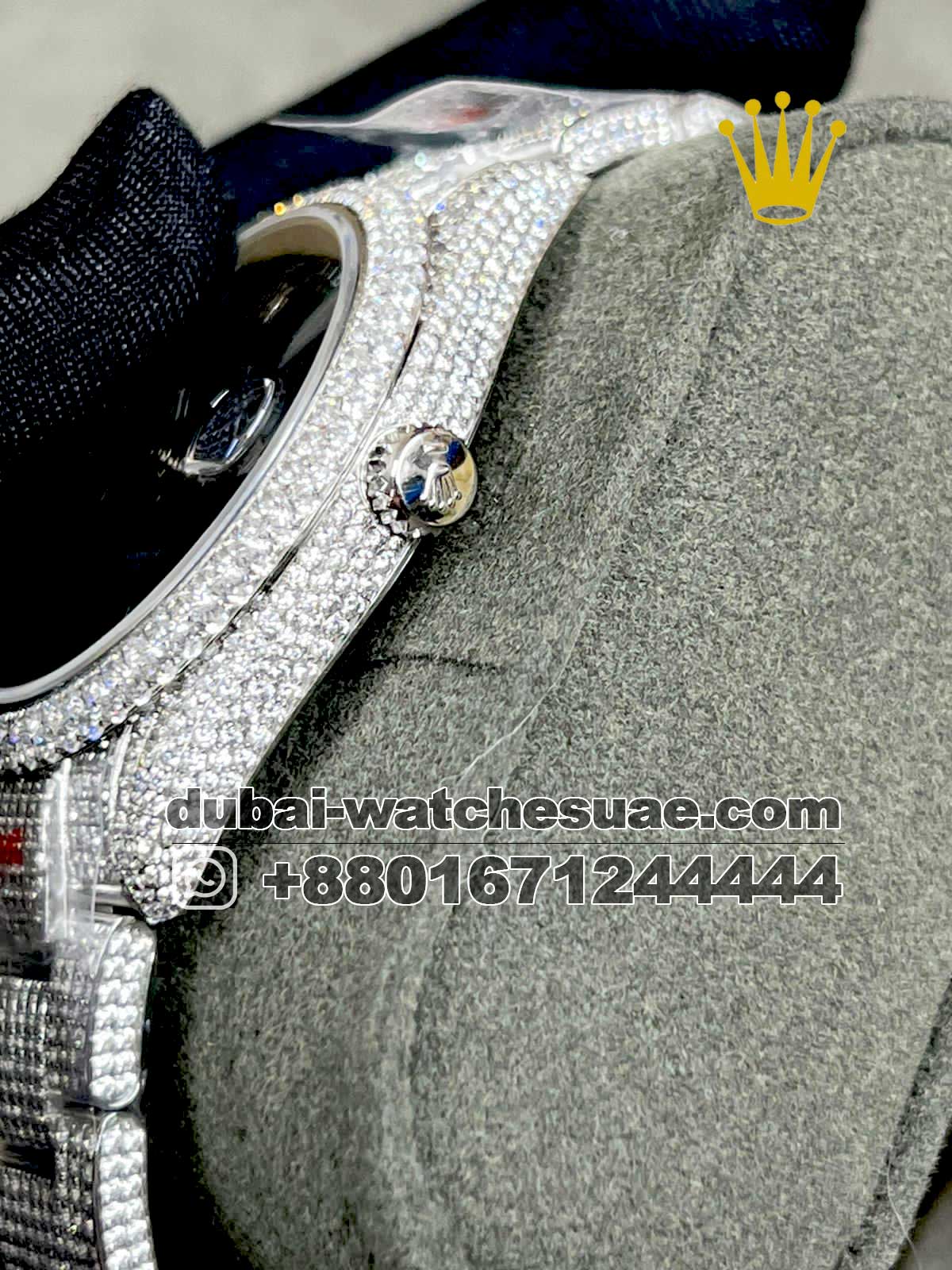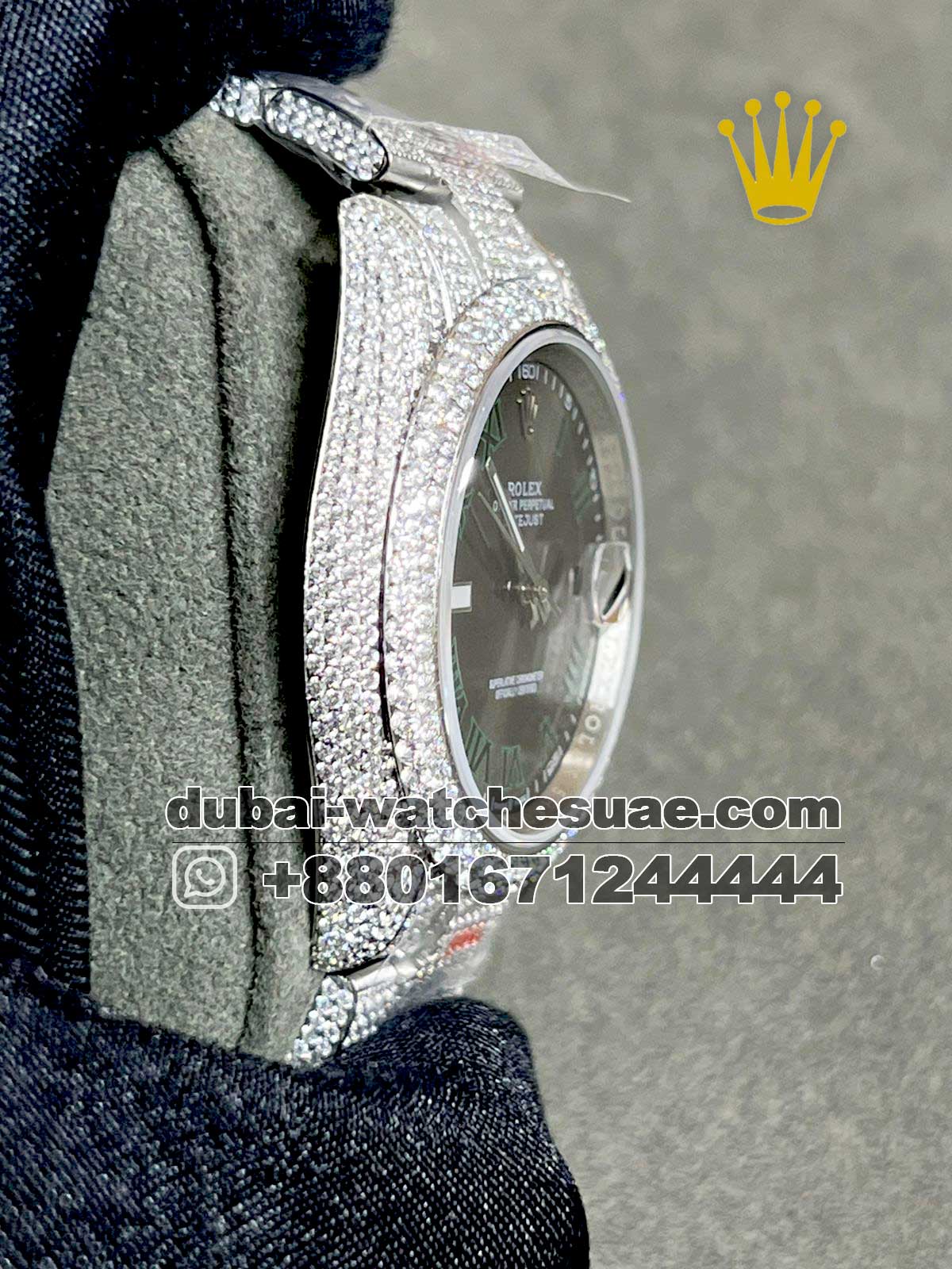Buy Super Clone Rolex Date Just Arabic Iced Out Gray Dial Watches in Dubai & UAE