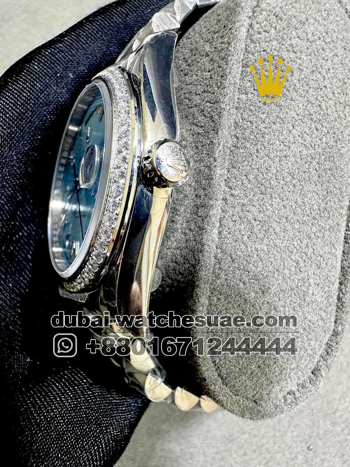 Rolex Day Date 40 mm Blue Dial With Stone Numeric? And Bezel With? Oyster Bracelet Copy