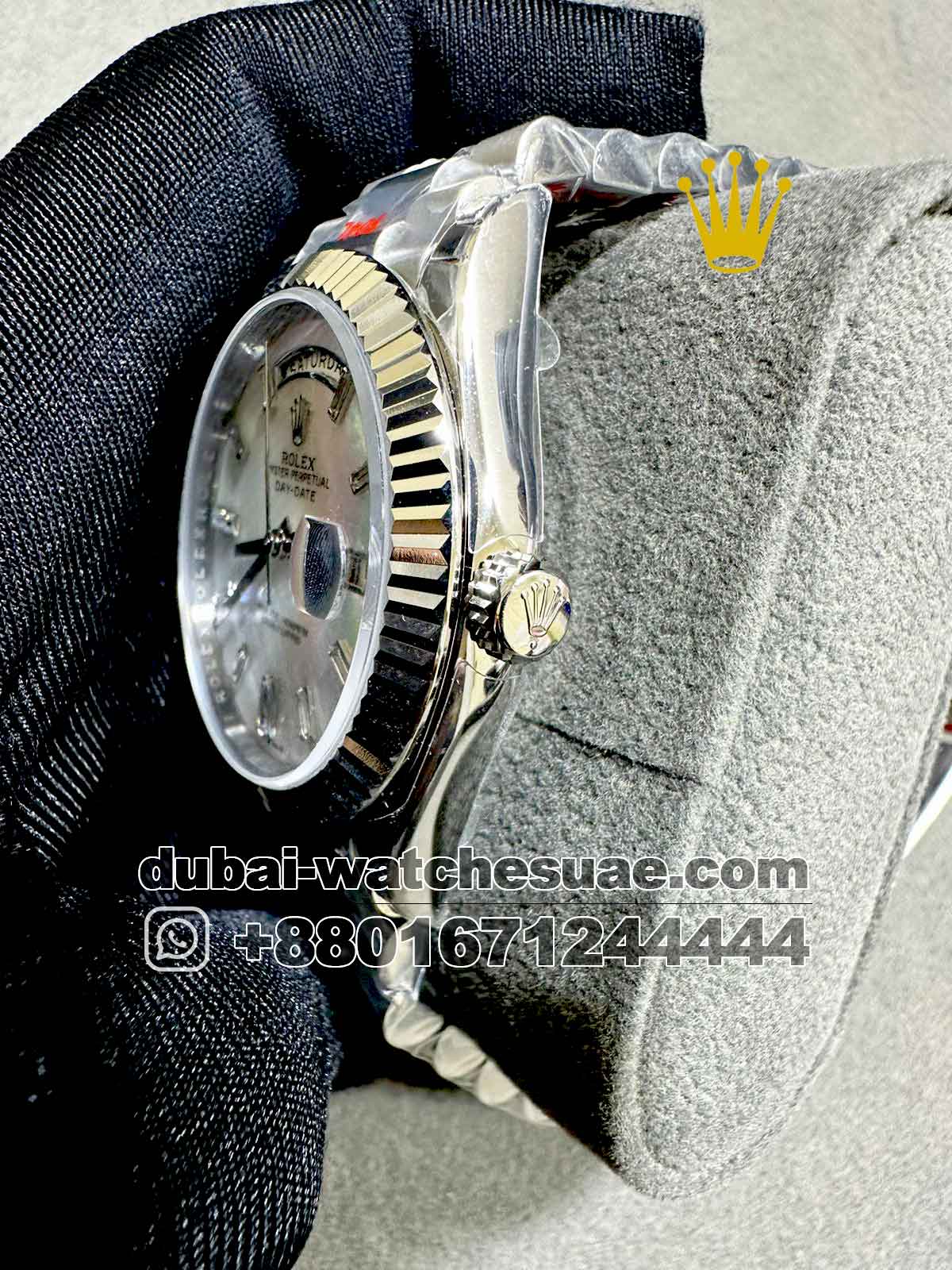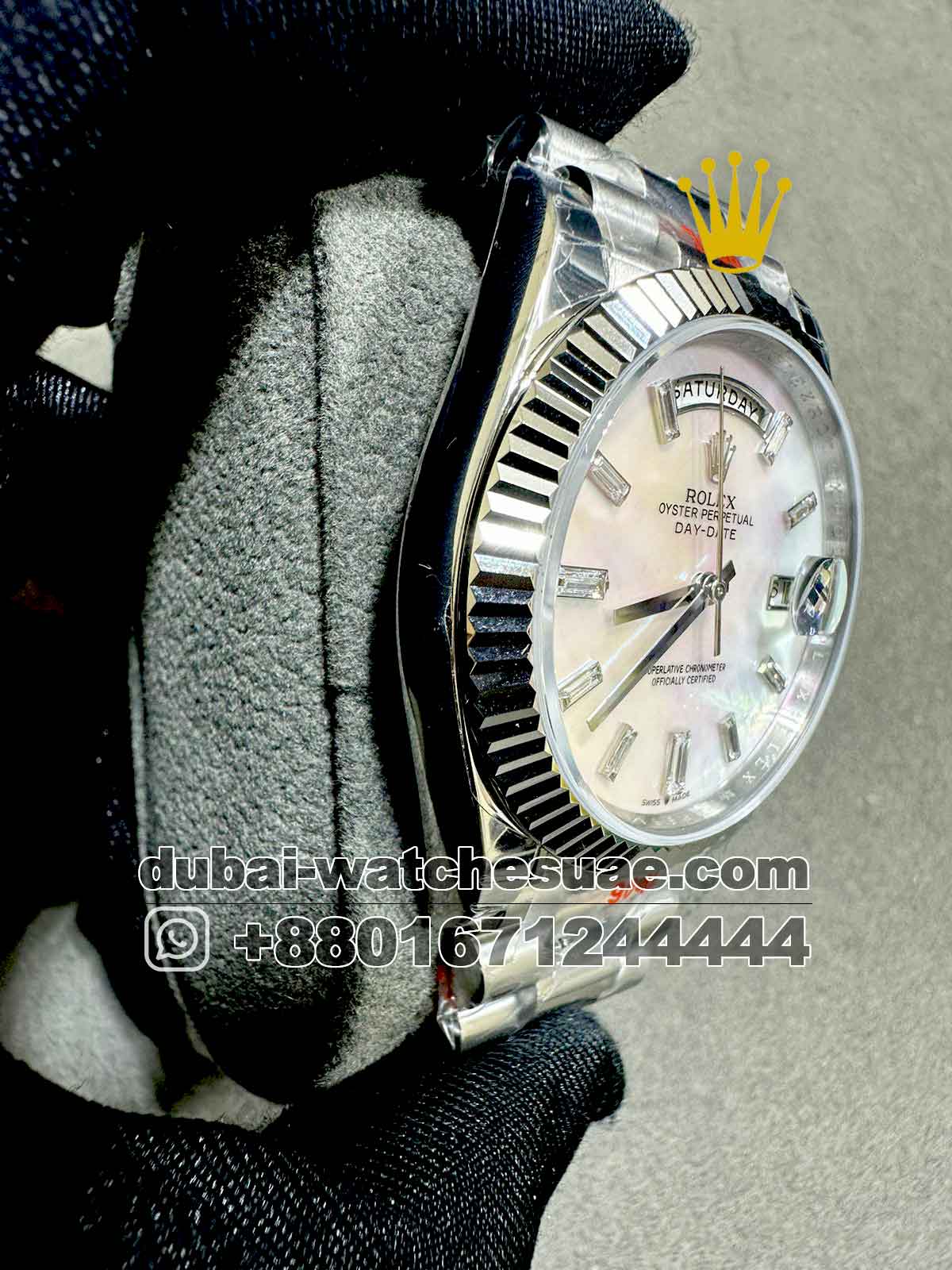 Model : Rolex Day Date 40 mm White Mother of? ?Pearl? ?Dial? Stonned Numeric and Flutted? Bezel with? ? ? ? ? ? ? ? ? Steel President Bracelet