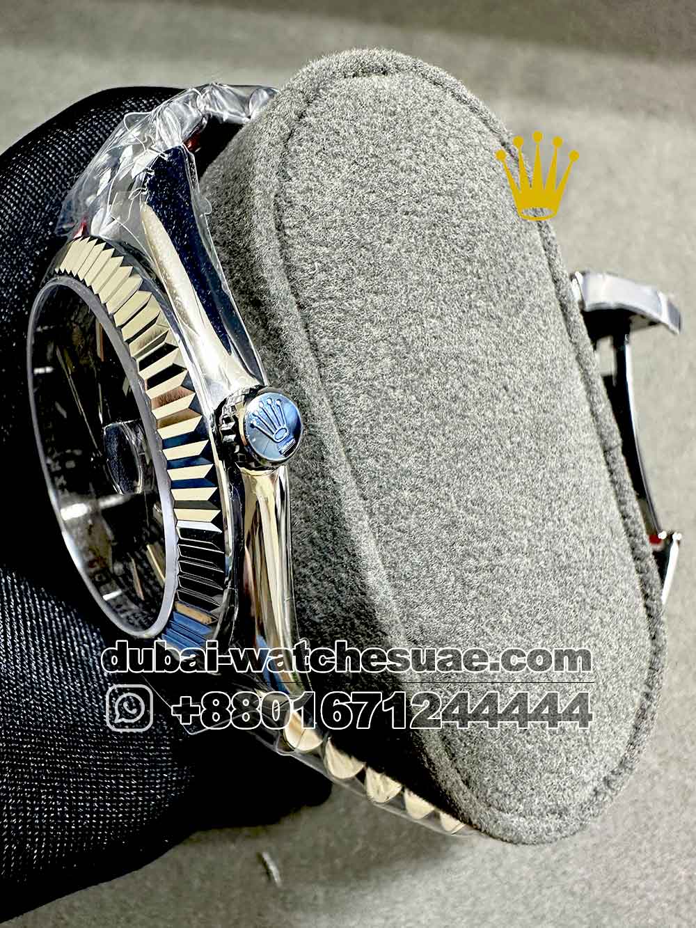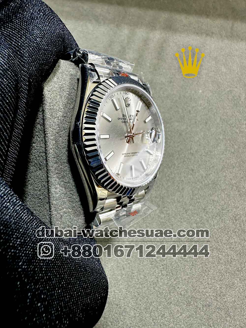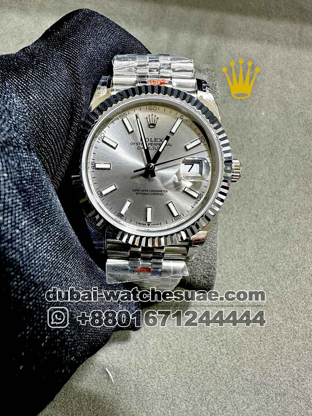 Model : Rolex Day Date 41 mm Gray Dial Flutted Bezel with Silver Bracelet
