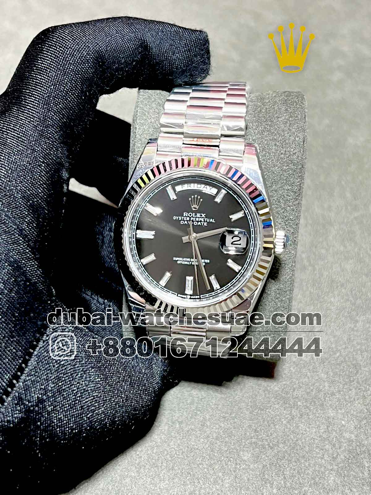 Dubai Watches UAE never sacrifices quality. They are one of the best online stores for selling replica watches. All our watches are super clone grade quality. We provide cash on delivery in full in Dubai. So if you like the Ladies? Rolex 40 mm day date, just contact us today.